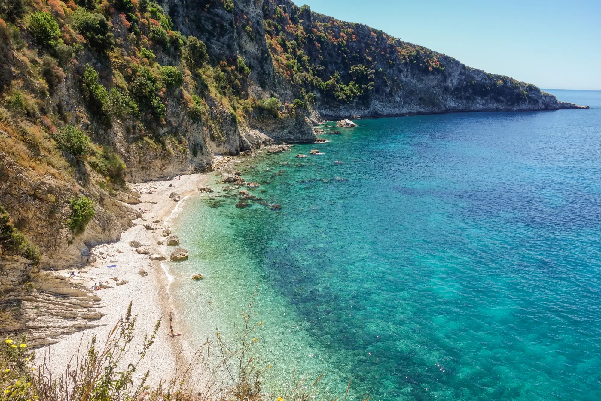 TIP 💡Bezoek een van de mooiste stranden van het land: Gjipe Beach. Dit exclusieve juweeltje bereik je alleen via een wandeling, maar eenmaal daar word je beloond met een stukje paradijs.
