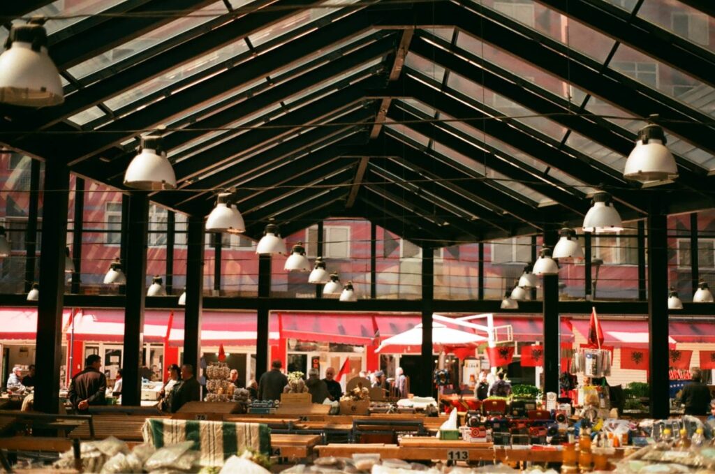 Pazari i Ri is een bazaar die ligt in de wijk met dezelfde naam en vormt het middelpunt van de buurt. Je loopt langs kraampjes met vers eten en producten uit de regio, en schuift net zo makkelijk aan bij een van de cafés of barretjes in de bazaar. Vooral in het weekend hangt hier een levendige sfeer. De bazaar vult zich dan met mensen die blijven hangen, rondlopen en deelnemen aan kleine activiteiten die regelmatig worden georganiseerd.